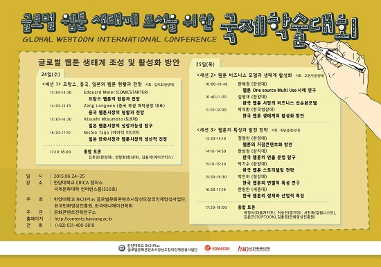 ѱȭ(̻ , ) Ѿ BK21 PLUS ۷ιȭ弱â缺( Ѿ ȭ BK21plus ), ѱִϸ̼ȸ 25, 26 Ѿ ERICAķ۽ ۷ι ° мȸ(GLOBAL WEBTOON INTERNATIONAL CONFERENCE) Ѵ.