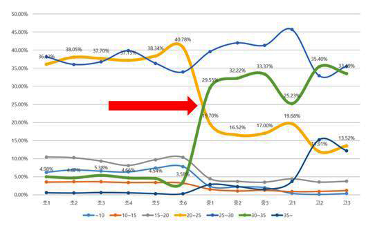 Ʒ ϴ л 20~25 б л 30~35 б , л ʵб б 20 ϴٰ, б б 30 ϰ Ǵ ̴.