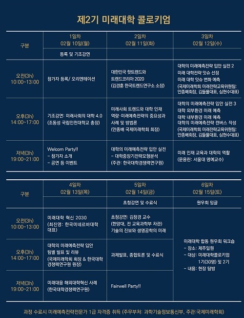 [½ºÄðiTV]±¹Á¦¹Ì·¡ÇÐȸ¿Í Çѱ¹´ëÇнŹ®»ç ºÎ¼³ Çѱ¹´ëÇаæÀï·Â¿¬±¸¿øÀÌ °øµ¿ÁÖ°üÇÏ´Â Çٽɿª·®±â¹Ý ¹Ì·¡´ëÇÐ Çõ½ÅÀ» ÁÖµµÇÒ ´ëÇÐ º¸Á÷ÀÚ¸¦ À§ÇÑ Á¦2±â ¹Ì·¡´ëÇÐÄÝ·ÎŰ¾ö ÁýÁß°úÁ¤À» ¿À´Â 2¿ù10ÀϺÎÅÍ 15ÀÏ(5¹Ú6ÀÏ) ±îÁö Á¦ÁÖÇѶó´ëÇÐ ÄÁº¥¼ÇȦ¿¡¼ °³ÃÖÇÑ´Ù.